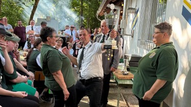 Das Schützenfest zum 115. Jahres-Jubiläum startete am 14. Juni um 9.30 Uhr mit dem Treffen am Ziegenmarkt. Das Wetter zeigte sich von seiner guten Seite und versprach den ersten richtig warmen Tag in diesem Jahr. Wieder am Start waren neben den Mitgliedern auch unsere treue Hockelrainer Musikkapelle. Beim Abholen der vier Könige lagen die Temperaturen noch im Wohlfühlspektrum und noch vor Mittag standen wir auch schon am Schützenhaus unter den kühlenden Eichen. Gestärkt durch gegrillte Steaks und Wurst sowie köstliche Salate und hausgemachte Torten konnte schließlich bis zum späten Nachmittag auf die neue Königswürde und den Pokalen geschossen werden. DJ Alex sorgte im Laufe des Tages bis zum Abend weiterhin für gute Stimmung bei festlicher Musik.