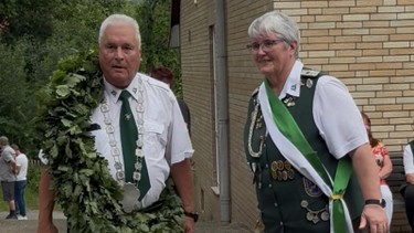 Am darauf folgenden Tag, nach dem gut besuchten Schützenfrühstück, marschierten Kapelle, die neuen Könige, unser Gäste vom SV Rittmarshausen, Mitglieder, Anwohner und Besucher gemeinsam zu den Anwesen der vier neuen Könige um die Scheiben anzubringen. Gute Laune und Stimmung verbreitete sich schnell auf den Höfen mit viel Tanz, Schunkel und Gesang. Anschließend ging es wieder zurück zum Schützenhaus. Nach der Preisverleihung wurde zu einer Vesper und Freibier eingeladen. Die gute Stimmung fand bis zum späten Abend keinen Abbruch. Das angekündigte Unwetter mit Starkregen zum späten Nachmittag traute sich nicht einmal in unserer Nähe - typisch Kerstlingerode.
